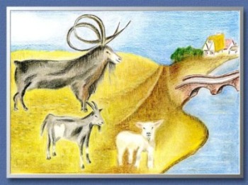 The Three Goats A richly illustrated, rhyming tale about three goats who want to cross a bridge. But the bridge is guarded by a wolf. Just a hint of the hidden message of this tale can be found on a little page at the end of the tale. Read >>