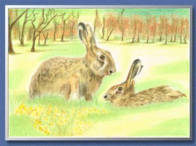 Although generally nocturnal and shy in nature, hares change their behaviour in spring, when they can be seen in broad daylight and amorous male hares approach females in the hope of finding a mate. That is maybe why they have always been closely associated to Spring, springtime fertility rituals and the goddess Eostre and still play a role in our Easter celebrations albeit watered down, chocolate covered and transformed in the Easter Bunny.