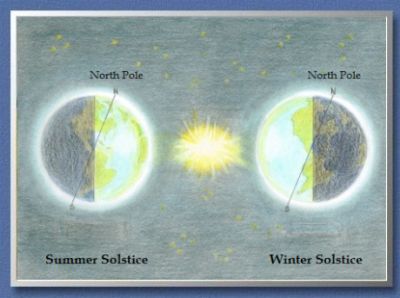 The solstice itself lasts only a moment when the North Pole is farthest away from the Sun due to the Earth's axial tilt and her position in her yearly orbit around the sun.