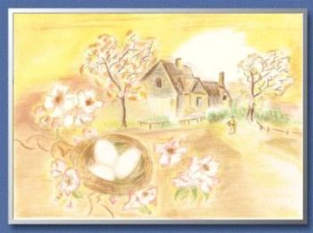 Now, so many years later, she stood once more under an apple-tree in full blossom. She stared up at the thousands and thousands of round white flowers that carried the promise of the fruit to come. The last of the sunrays softly lightened up the blossom. An intense joy welled up from deep within her; almost too huge too overwhelming. For an instant she felt the two moments melting together. Then and now: it was all the same. Time was no more but then the moment passed.